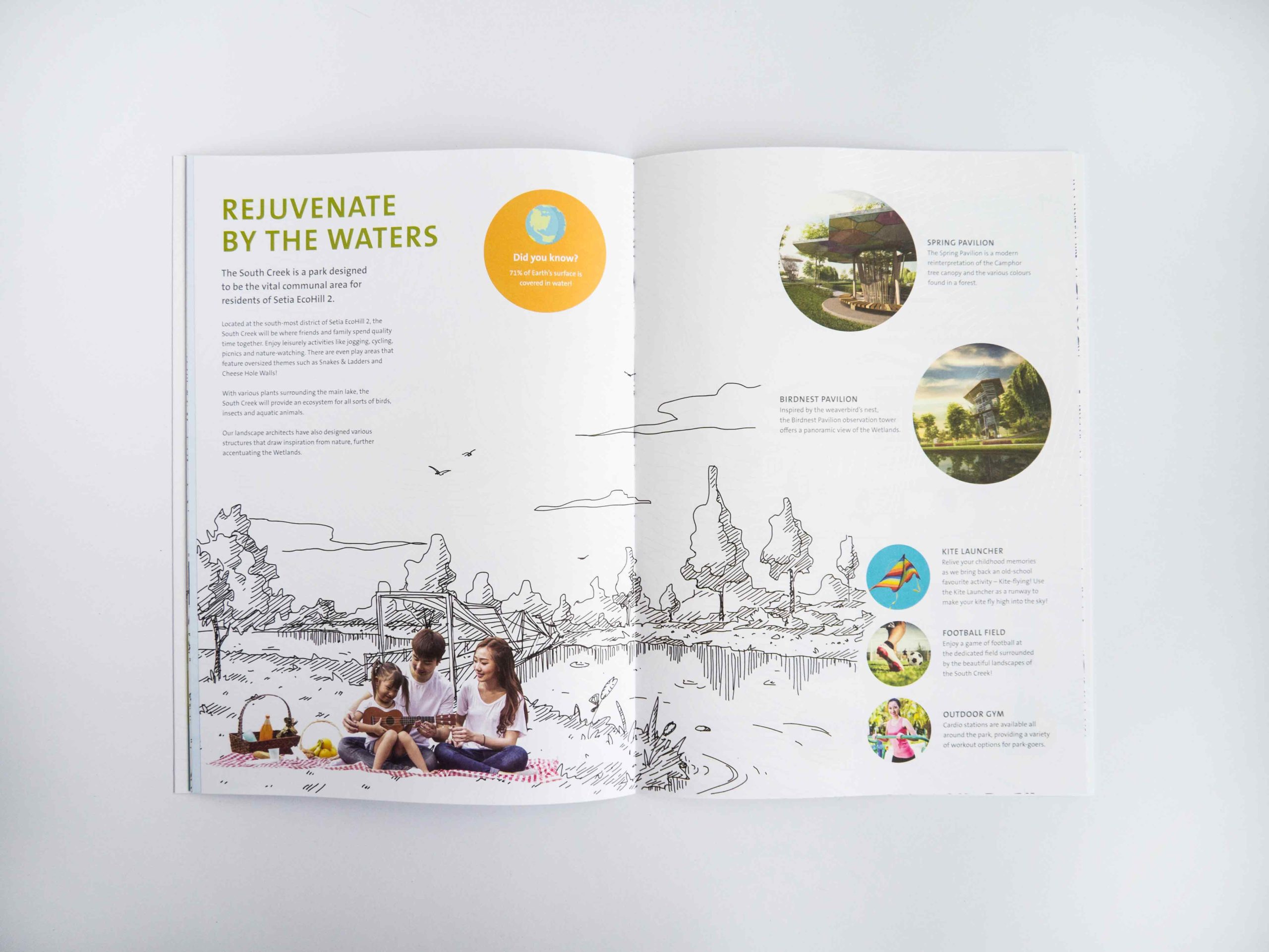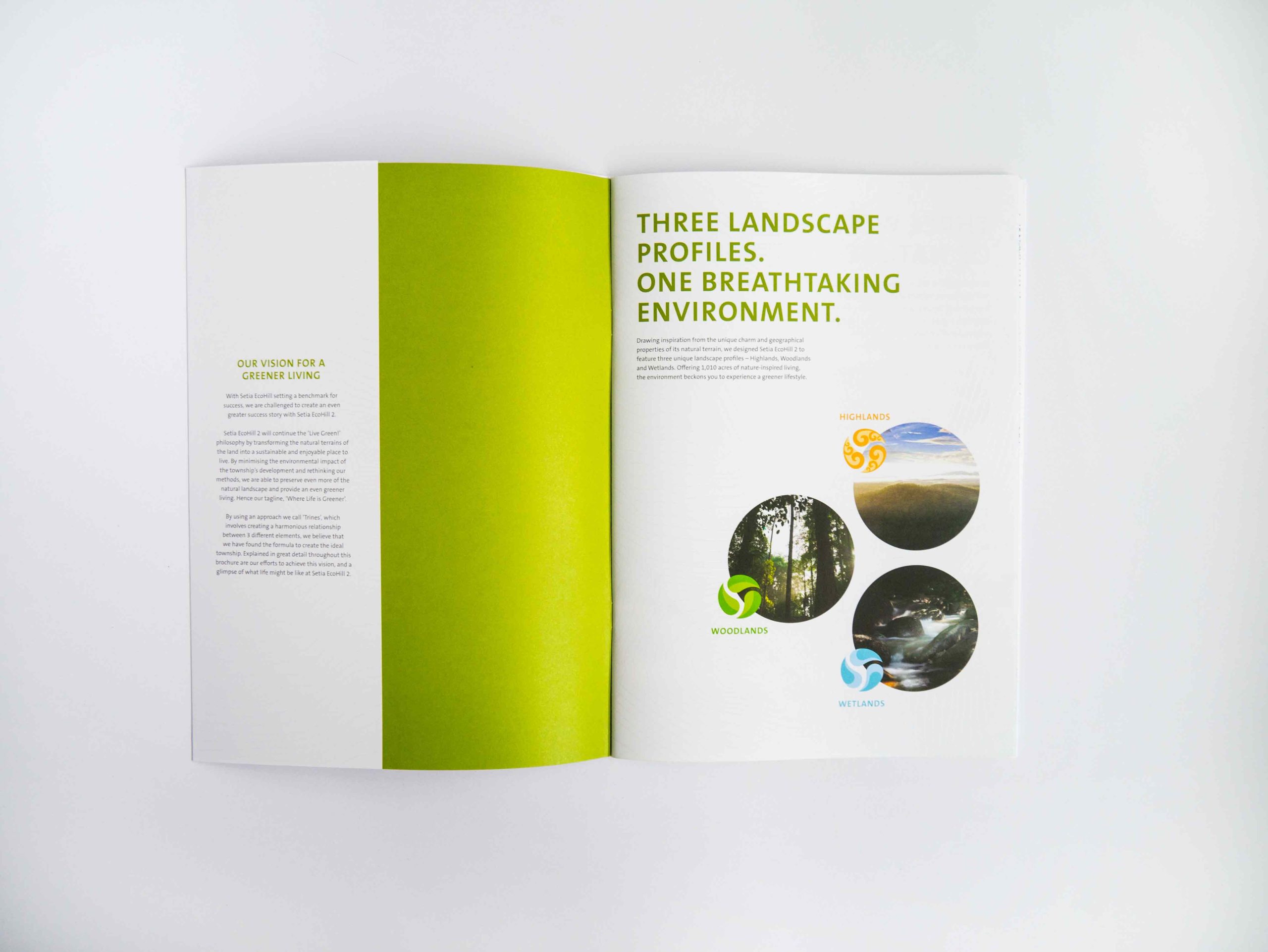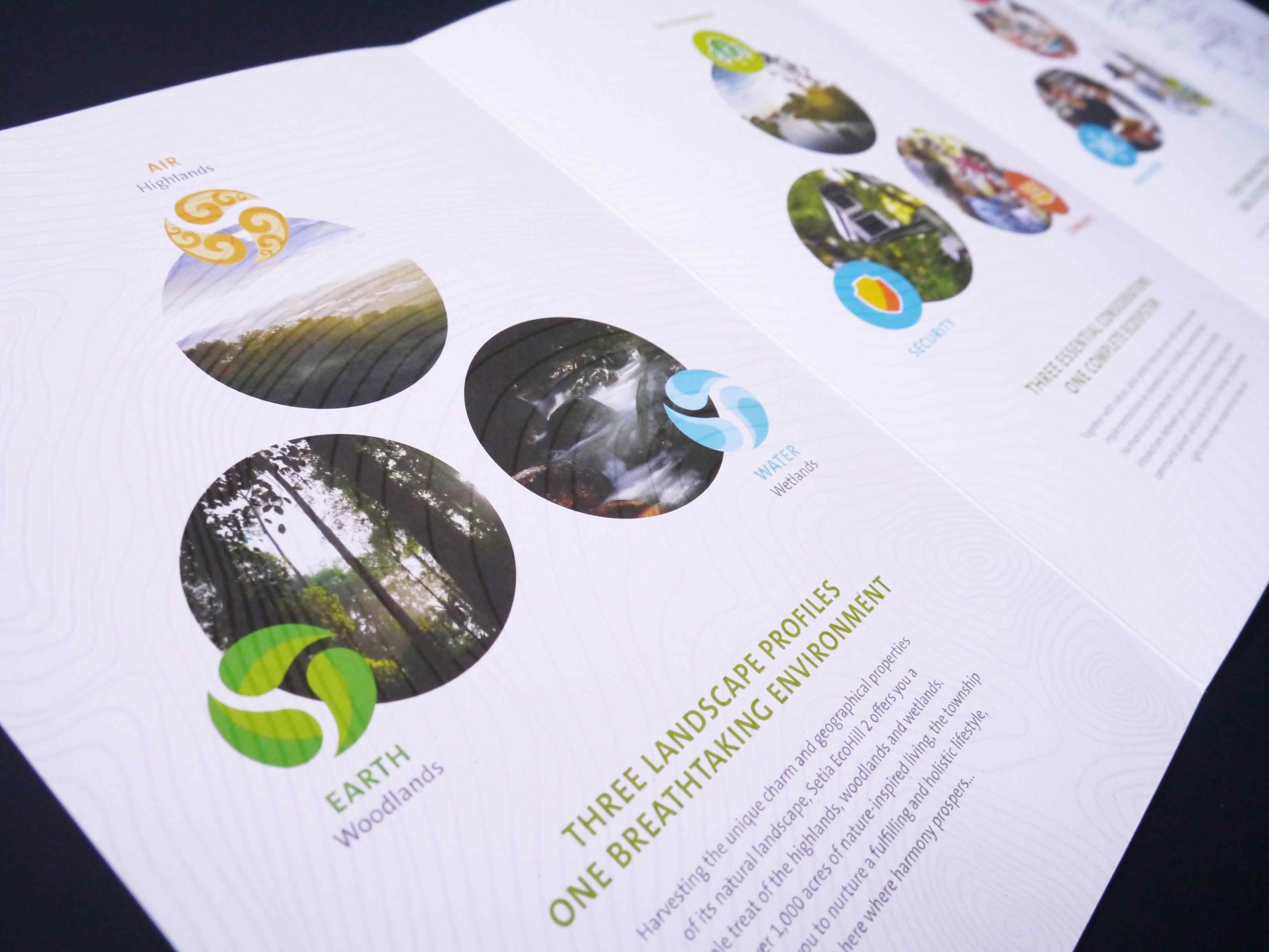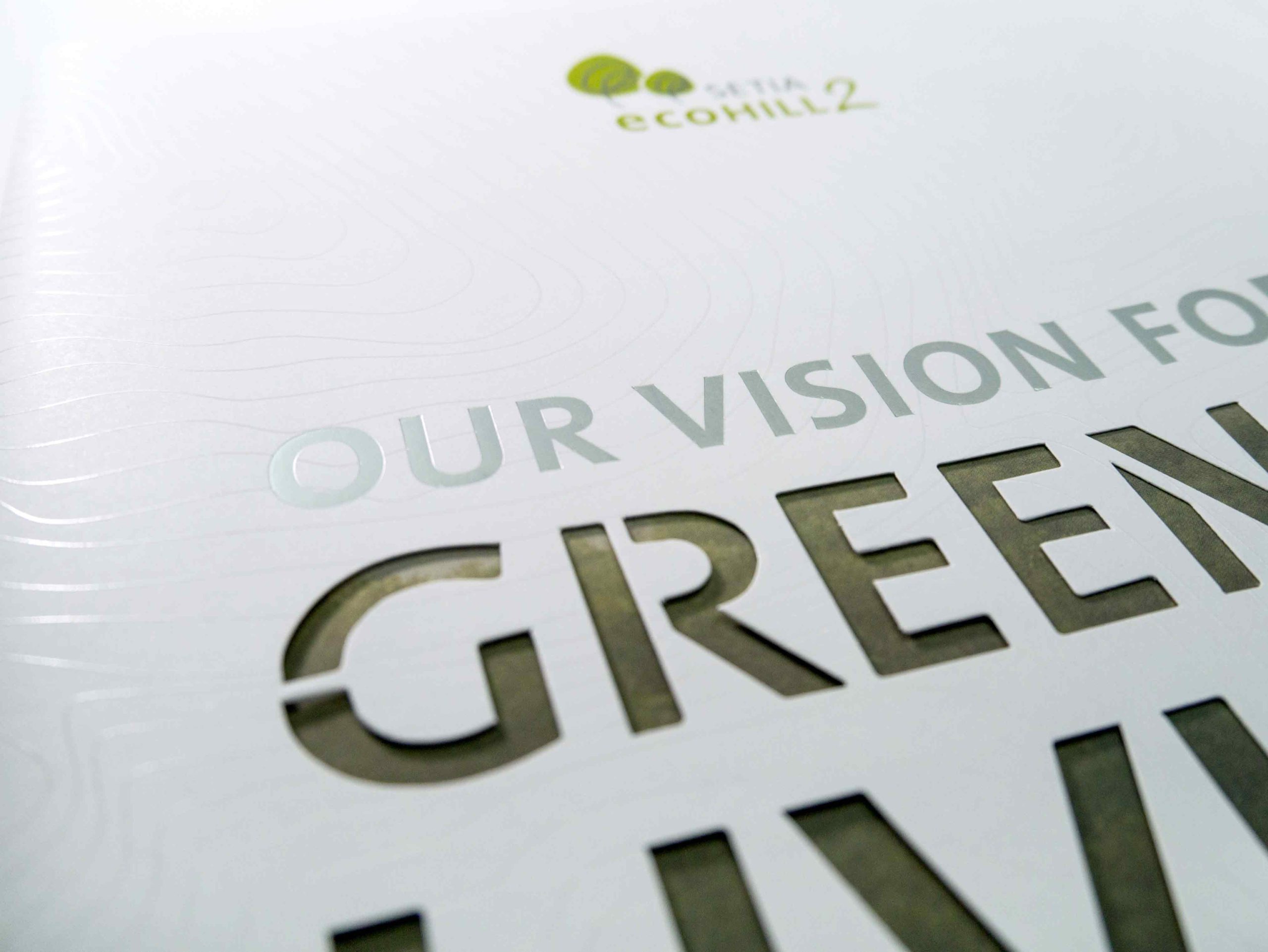 The visual identity employs contour lines to represent the movement of air, the topography of the land and the flow of water, and is an element that is used to identify and represent Setia EcoHill 2.