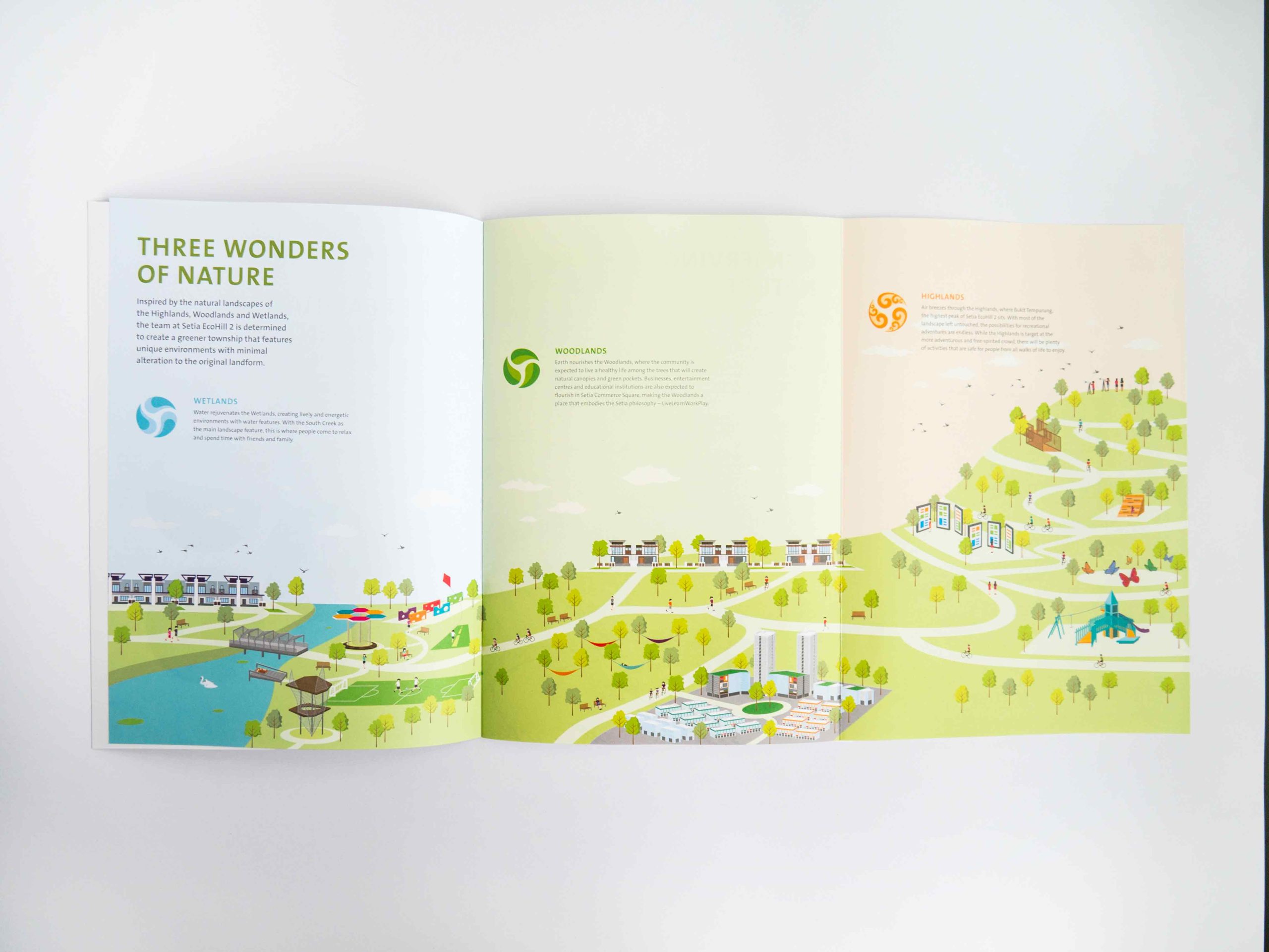 Setia EcoHill 2 is an eco-centric township development in Semenyih. The concept is based on the landscape profile of the township, which comprises the Highlands, Woodlands and Wetlands. VORT3X proposed the strategy of using Air to represent the Highlands, Earth to represent the Woodlands and Water to represent the Wetlands.