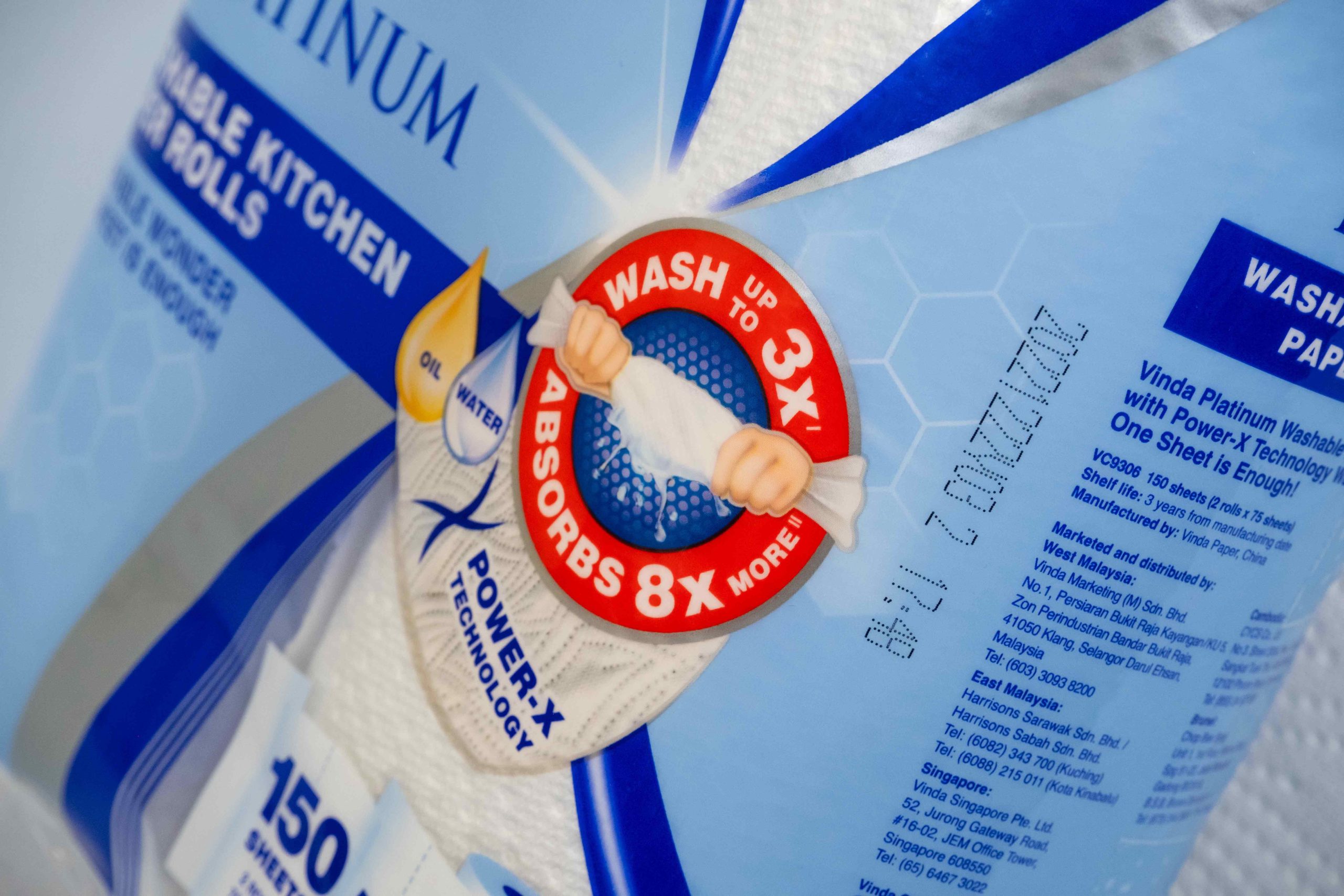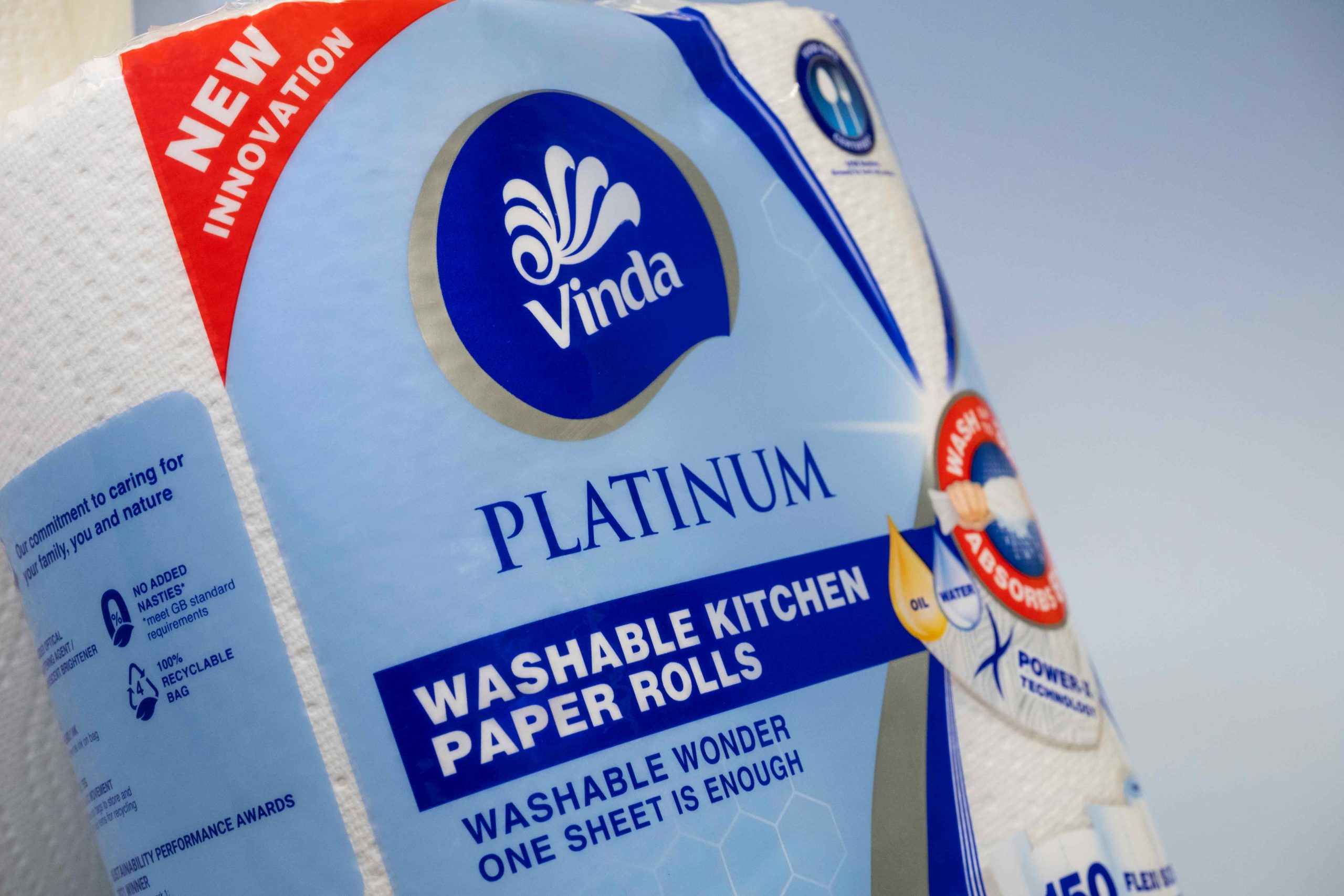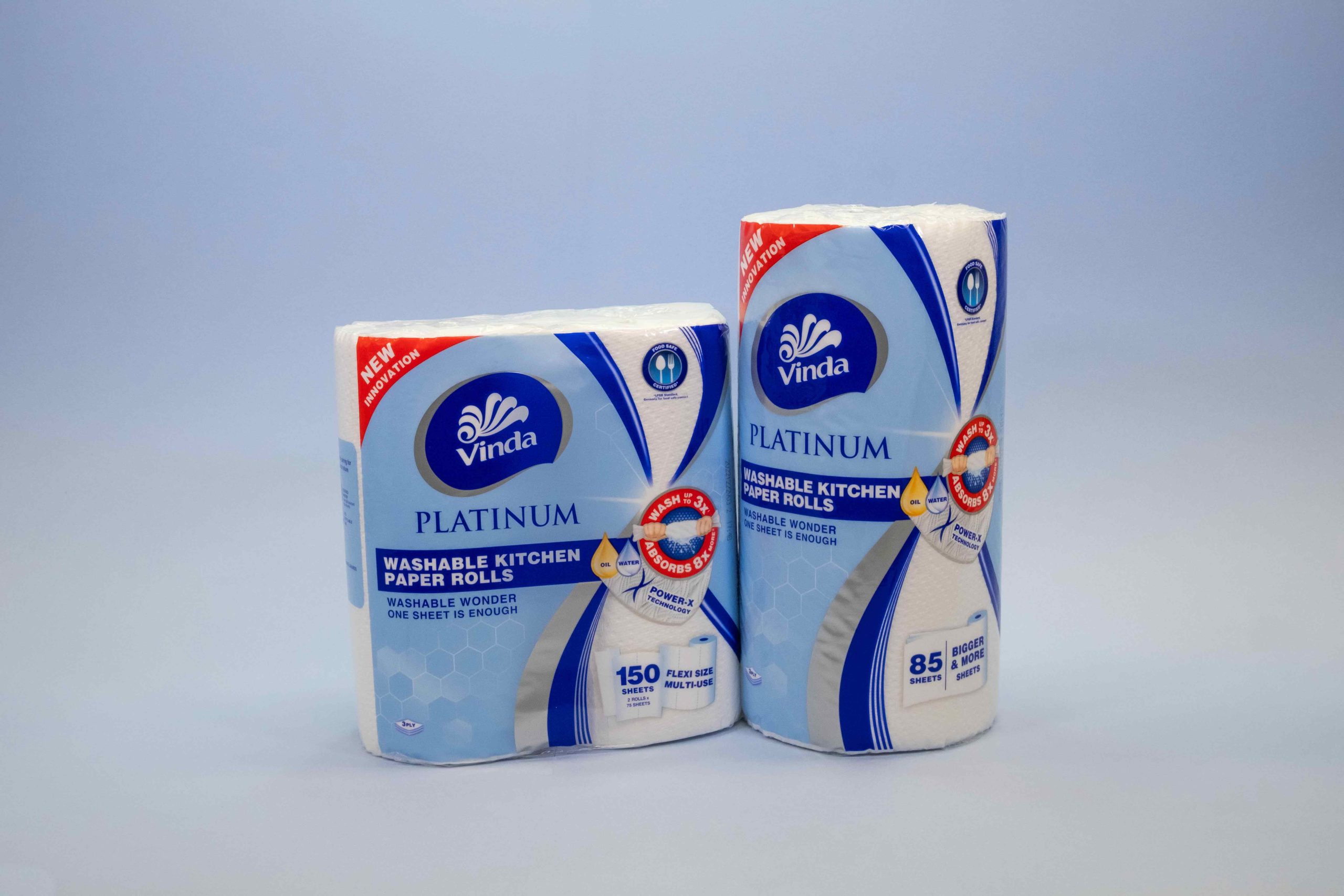 Vinda needed to introduce a new series of Washable Kitchen Paper Rolls. VORT3X came up with the name Vinda Platinum and a new packaging graphic and colour to differentiate it from their existing products.